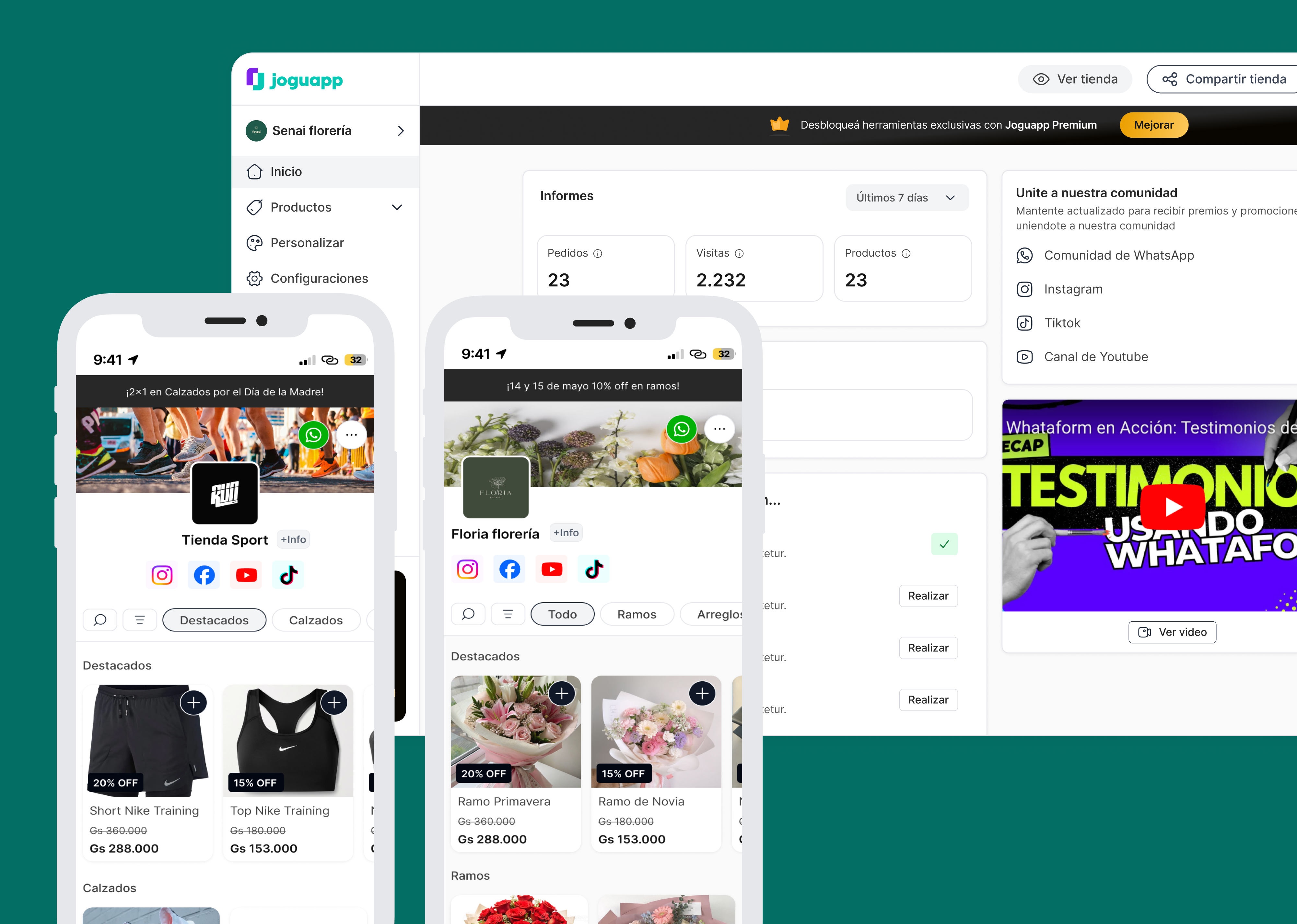 After running Joguapp as a marketplace, we realized that most entrepreneurs wanted more than just listing products. They needed their own online store, with a personalized URL, a place to showcase their catalog, and tools to manage sales directly.